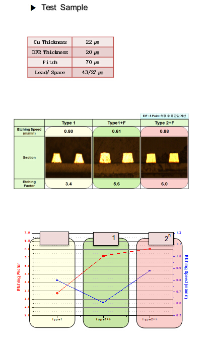 1. 在形成精细线路时可以有效进行铜蚀刻